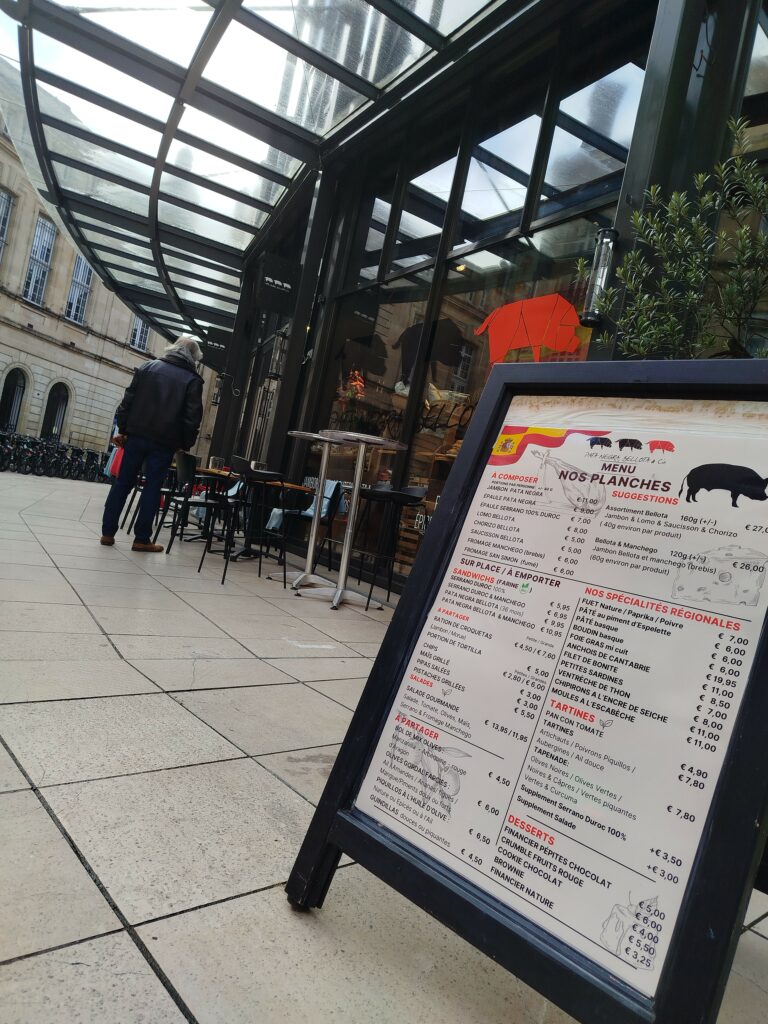 Au-delà de la vente, Pata Negra, Bellota & Cie propose une véritable expérience gourmande. Il est possible de manger sur place, avec des planches de charcuterie, des tapas et des bocadillos, préparés à partir des produits de la boutique. Cette dégustation permet de découvrir les saveurs avant l’achat ou simplement de partager un moment convivial autour de la gastronomie espagnole.